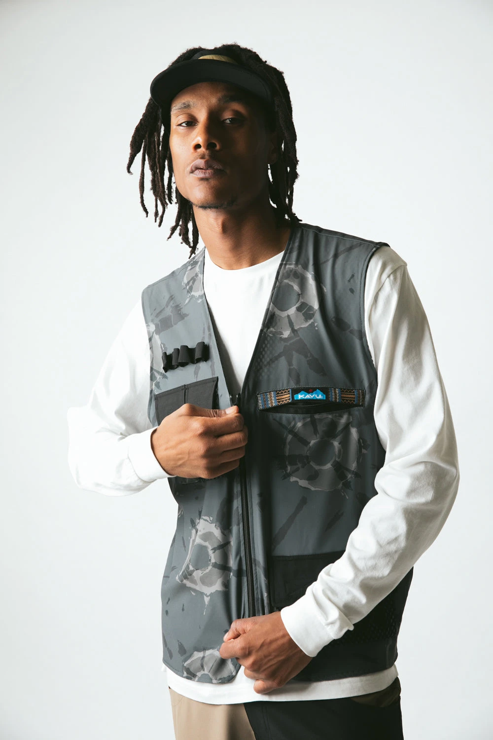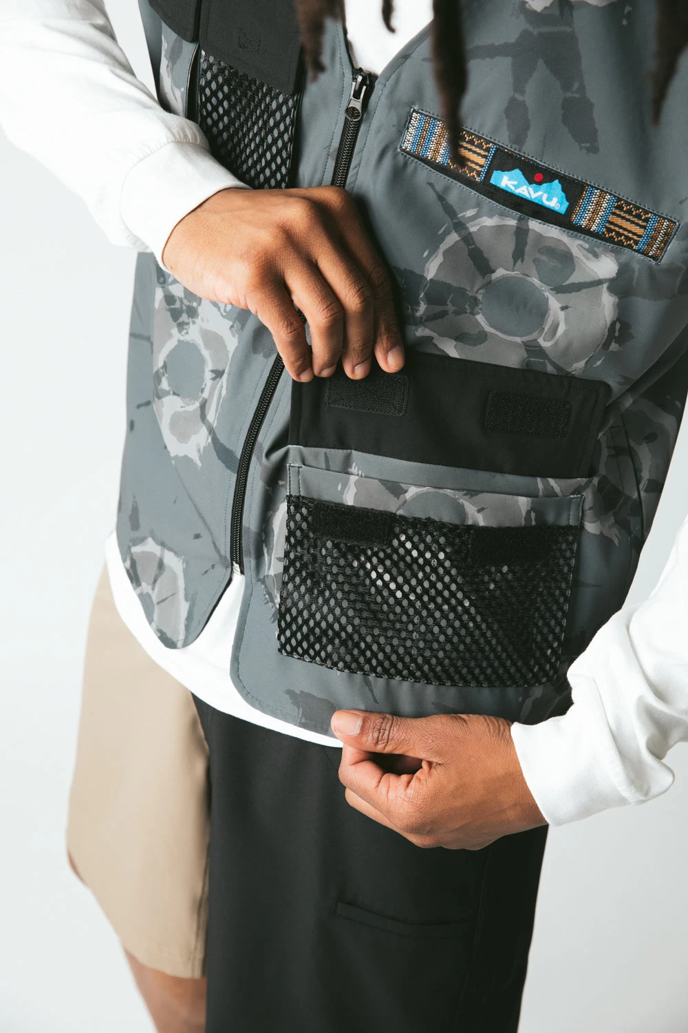 Did someone call for an adventure vest?? This quick dry poly-cotton stretch vest boasts eight pockets – and if you’re on a KAVU adventure, you’ll use them all. The All Nighter boasts one secure zipper chest pocket with custom KAVU webbing, double cargo chest pockets bellowed at the side, a mesh outer pocket with hook and loop closure, a lower cargo pocket with bellows and hook and loop flap, an exterior mesh pocket with hook and loop flap for tons of organization, plus on-seam hand pockets. Organization is great but, this much fire needs to breathe – hence the fully mesh-lined back serves as a ventilation window to keep you cool. Design constructed this vest for fishing, camping, hiking, or pulling an all nighter. Like all things KAVU – Engineered For Good Times®.