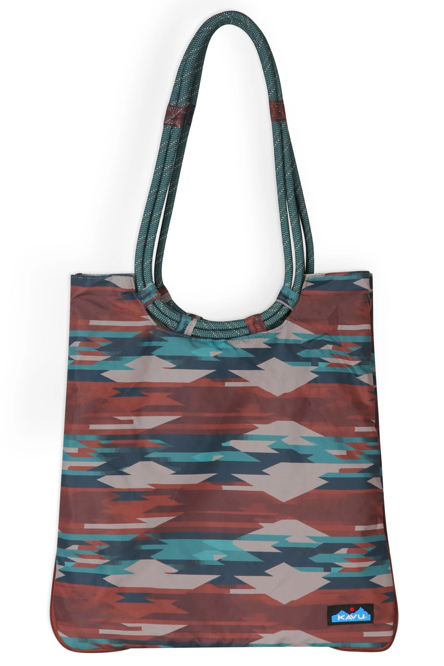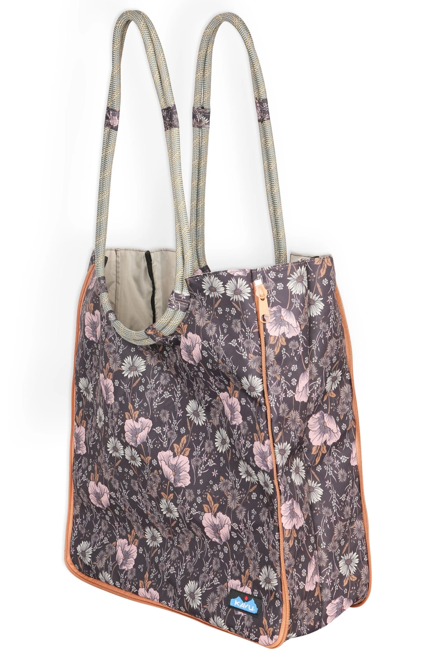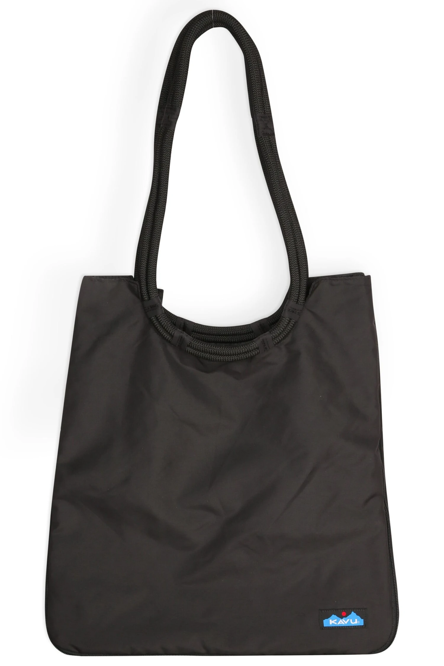 Large tote with fixed rope shoulder straps and expandable main compartment.