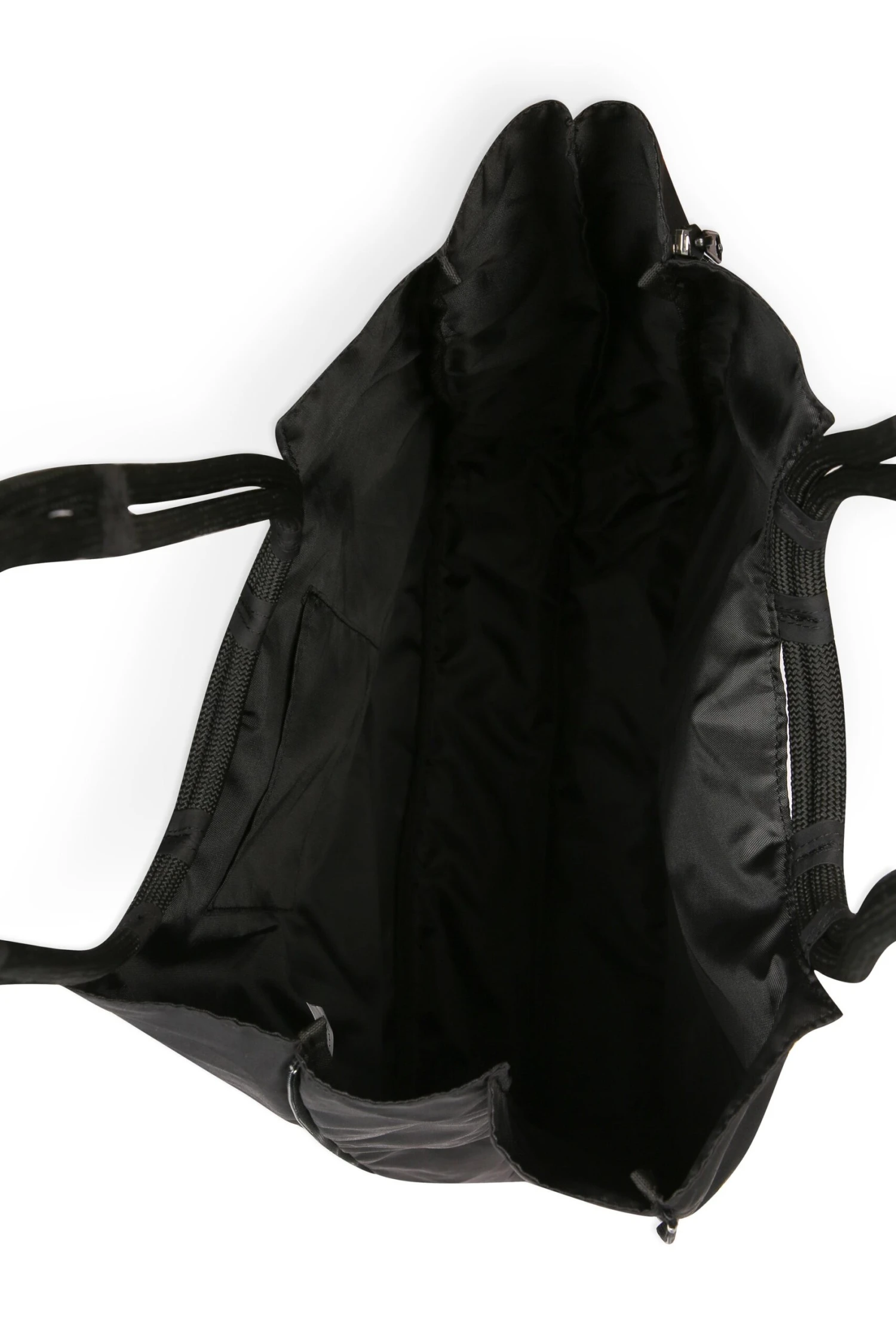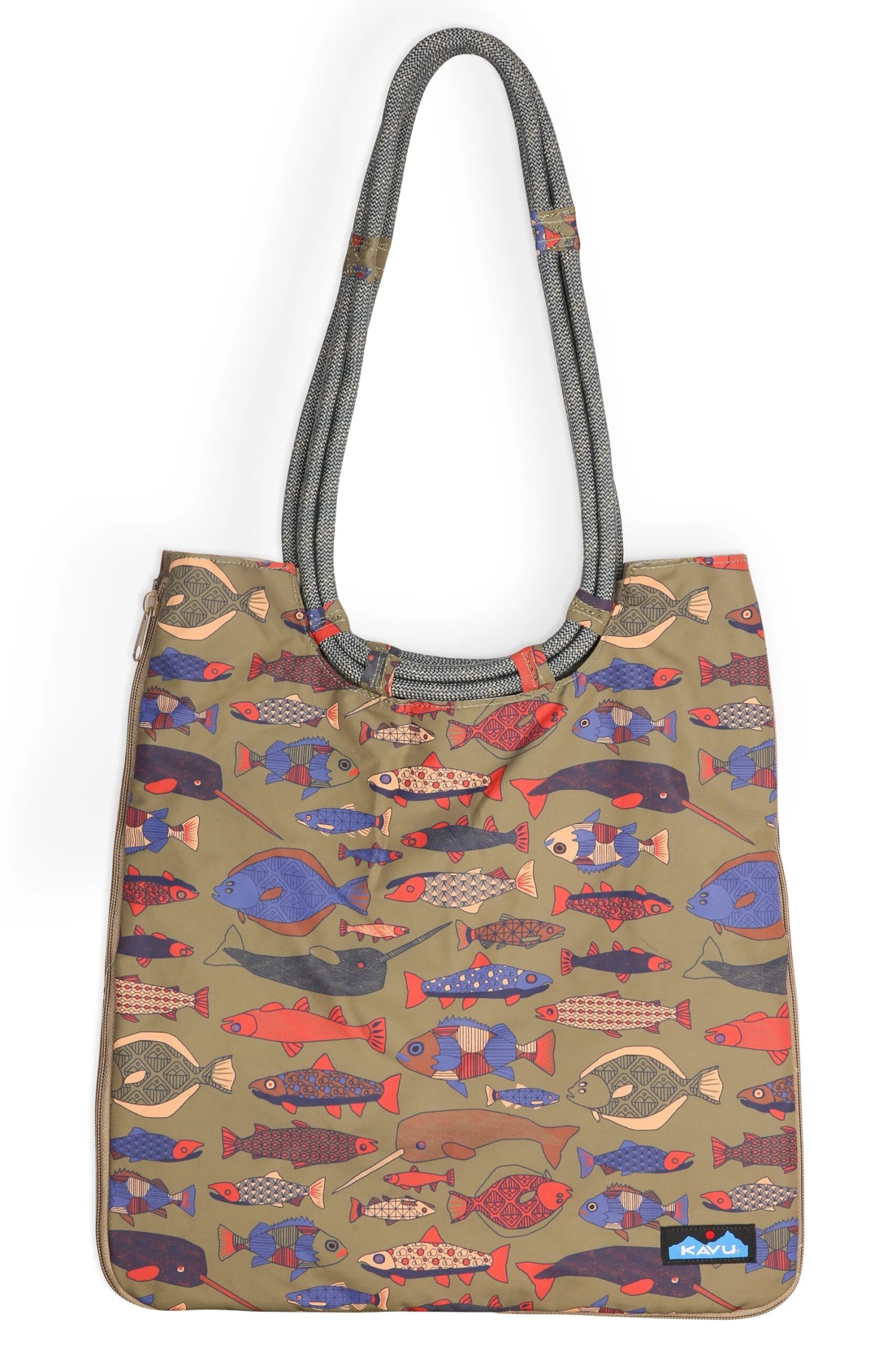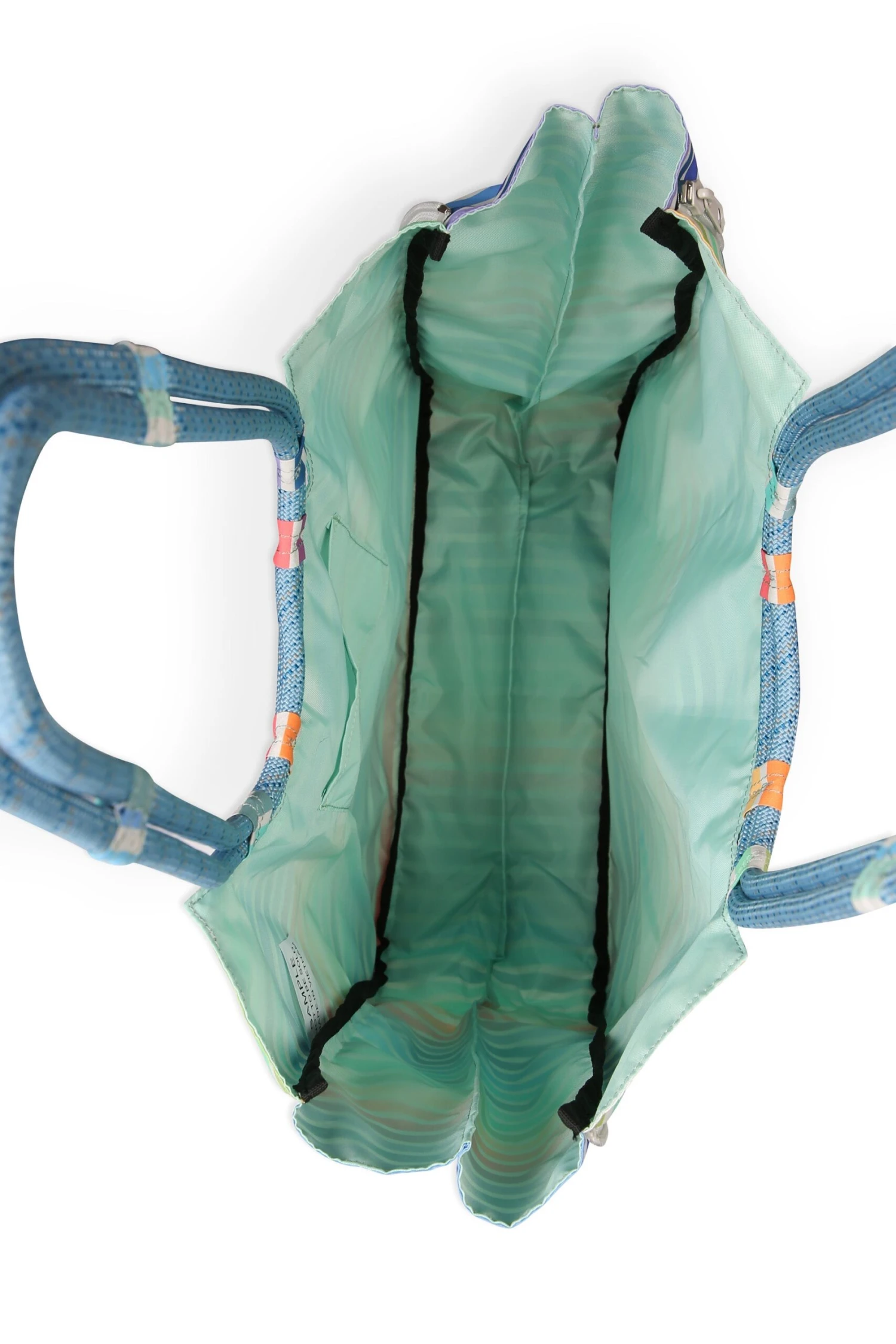 Large tote with fixed rope shoulder straps and expandable main compartment.