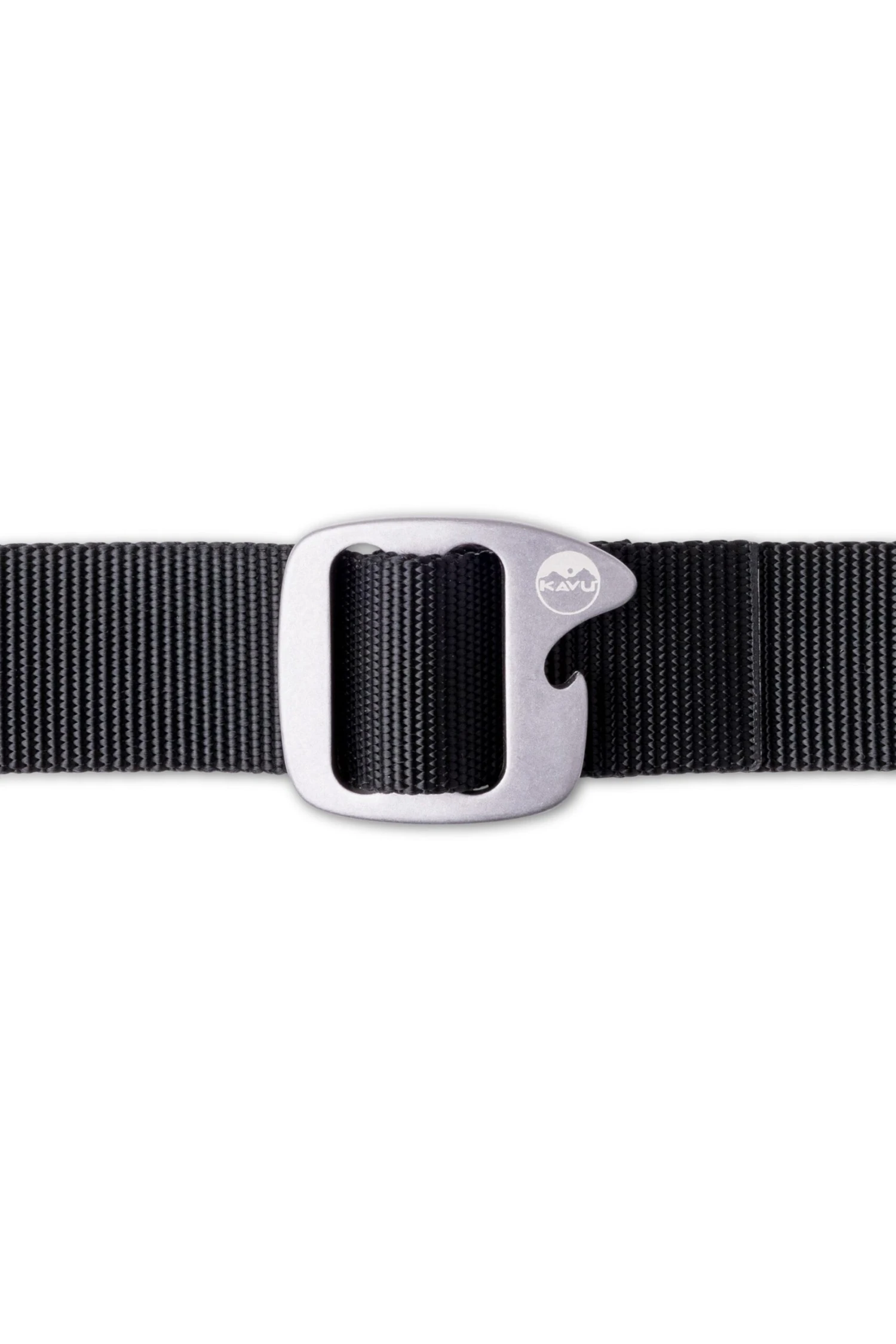 1.5” wide adjustable nylon webbing belt with built-in bottle opener on gunmetal buckle and KAVU embossed logo.
