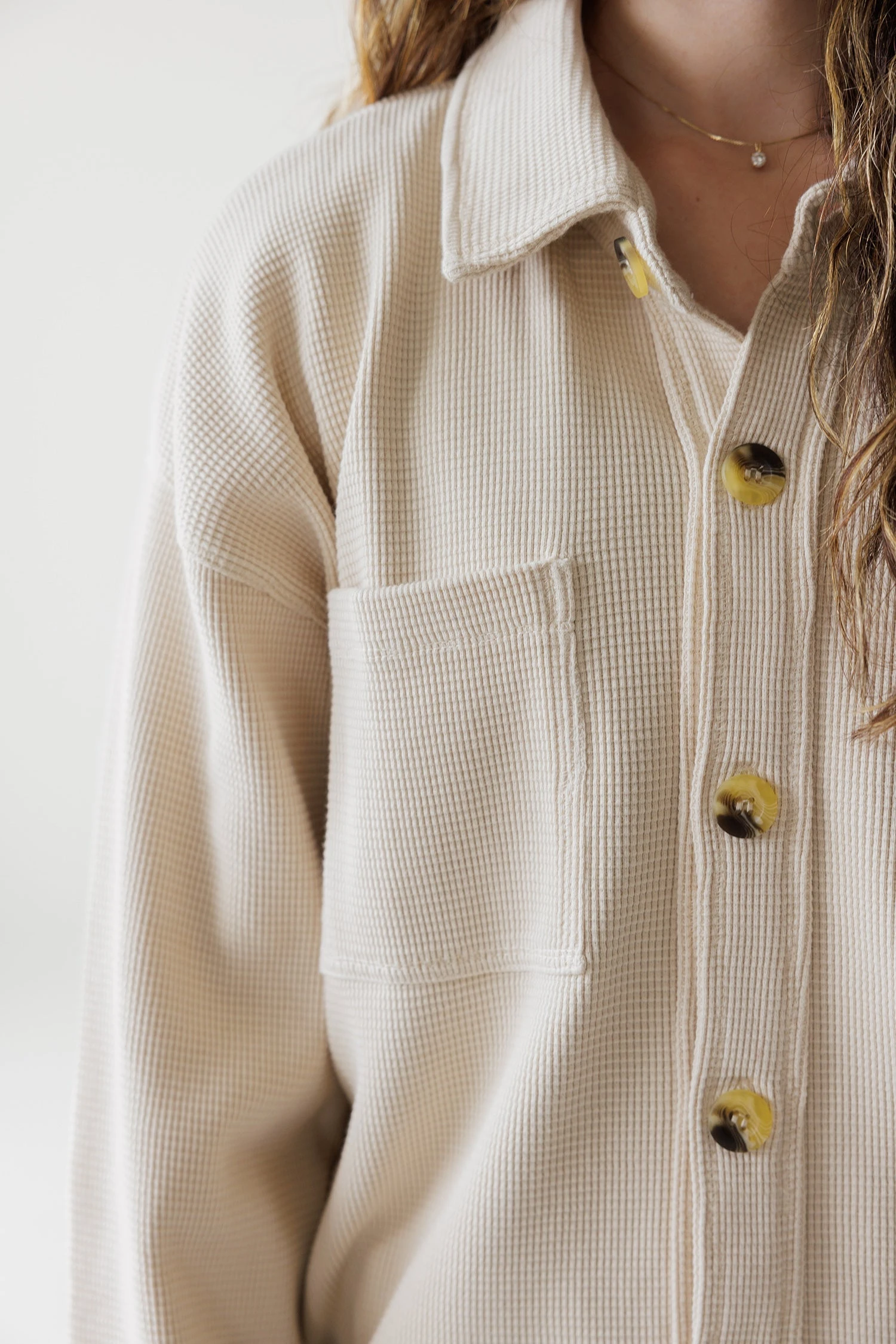 Sunday morning at grandmas just got better. Throw on the Brierwood and experience the delight of this 100% cotton heavy thermal waffle knit. Slather this in maple syrup and sprinkles. Button up style gives you the option to wear it open or closed, making it a great layering piece.
