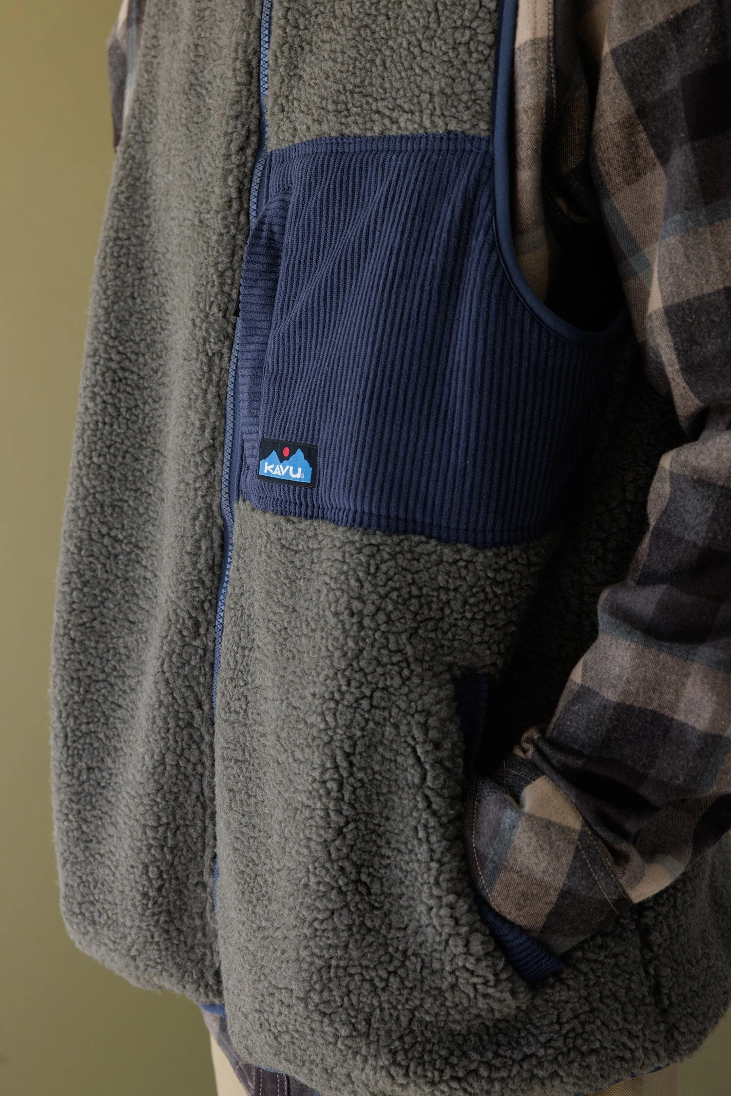 The Cooper is back! Our vest version of the Wayside – this heritage-inspired fall classic is a mix of old school cool, high pile sherpa fleece and eco-friendly recycled fabric. Keeps your trunk warm so you can live your best KAVU day ever.