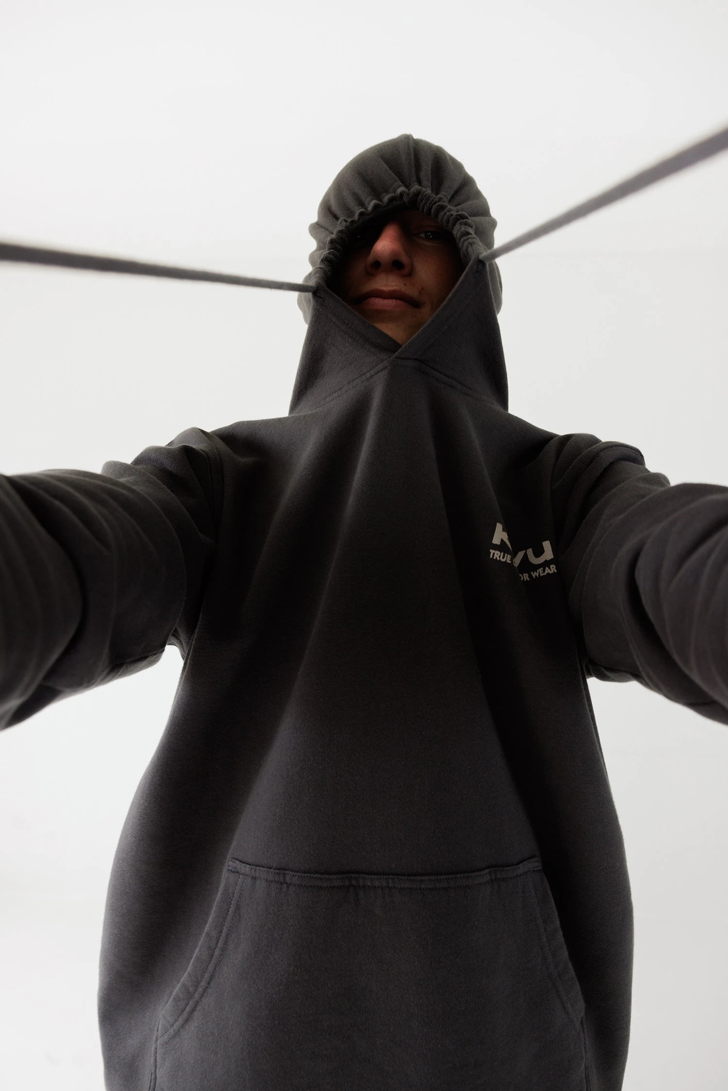 Standard unisex fit, pullover sweatshirt with hood and drawstring, screen print on front and back, ribbed sleeve cuffs and waistband.