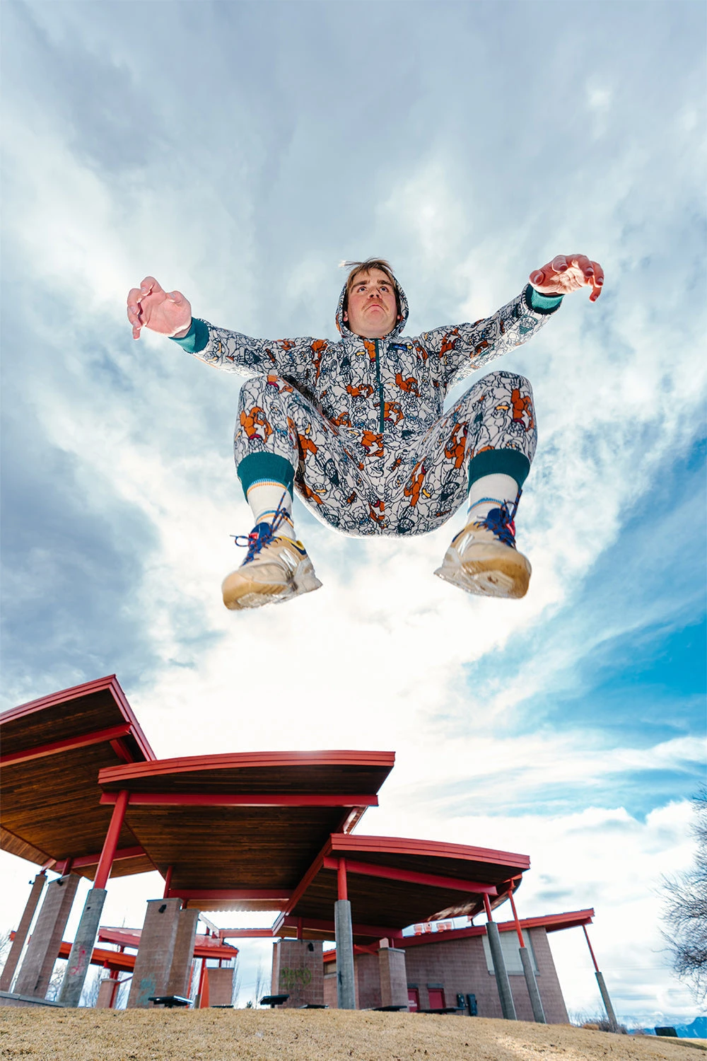 - Relaxed fit adult-size hooded one-piece