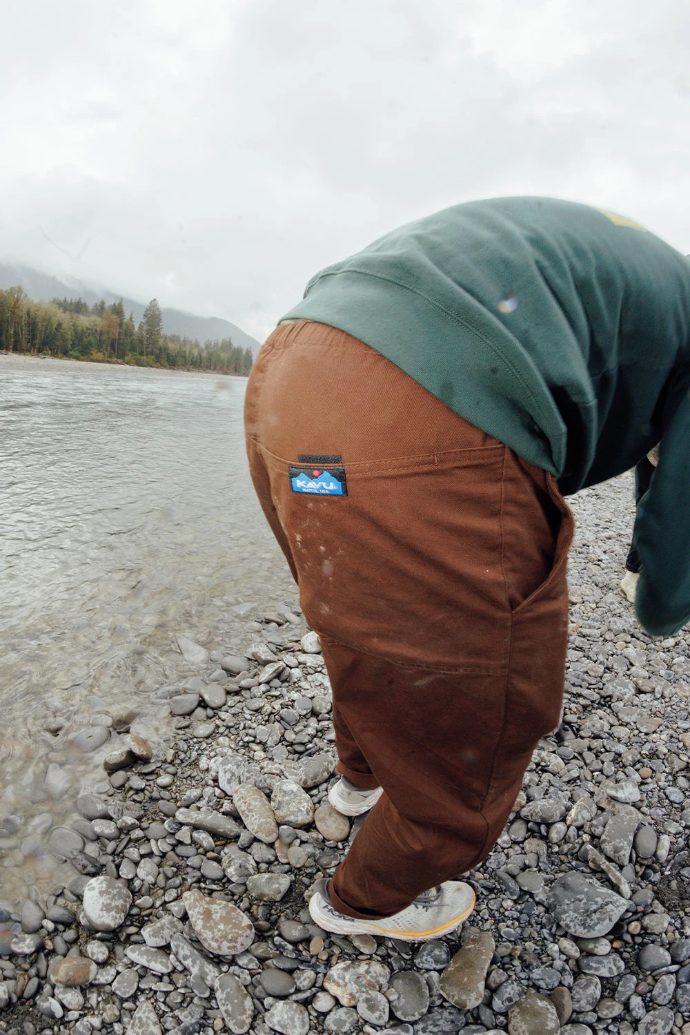 From our Heritage Collection, this original scrag pant was created as a lighter, more free-living cousin of the Chilliwack styles. This garment dyed knock-around pant utilizes an airy 7oz twill, full elastic waist, and the obligatory gusseted crotch from excellent freedom of movement.