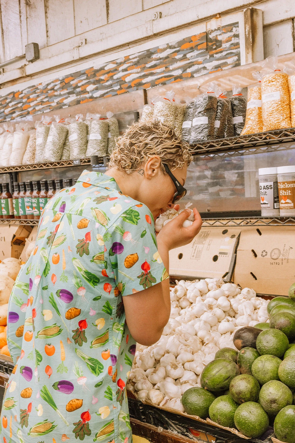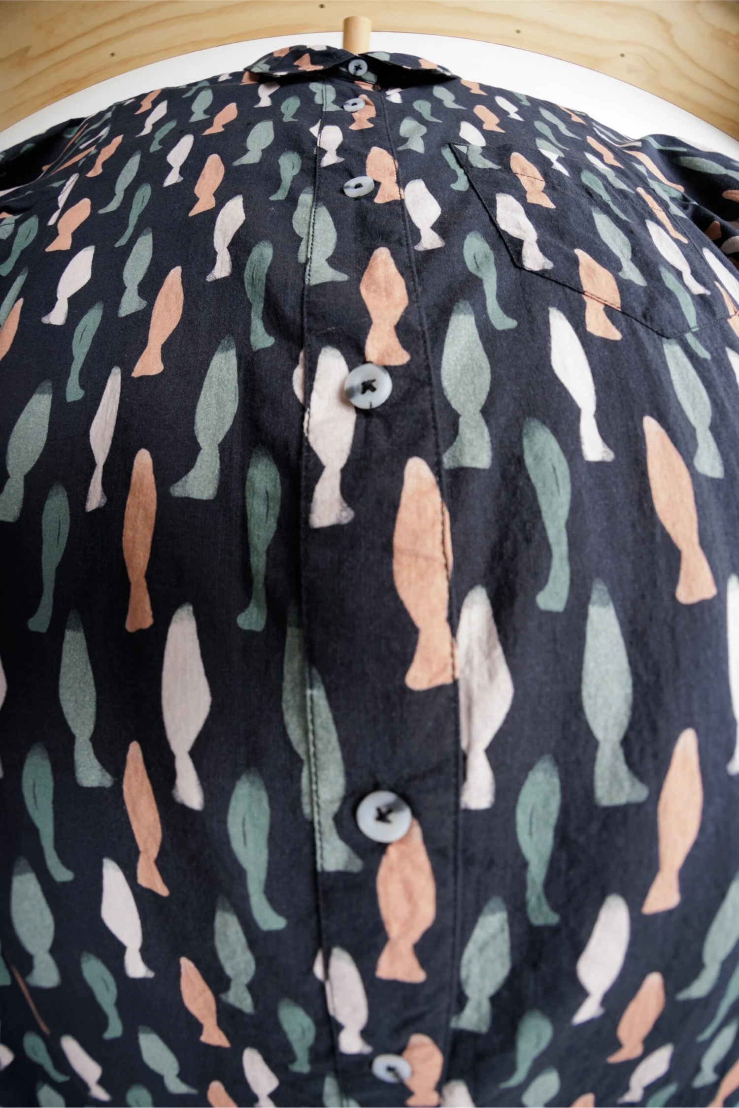Fabric: 2.5oz 100% certified organic cotton – all over print – light wash.