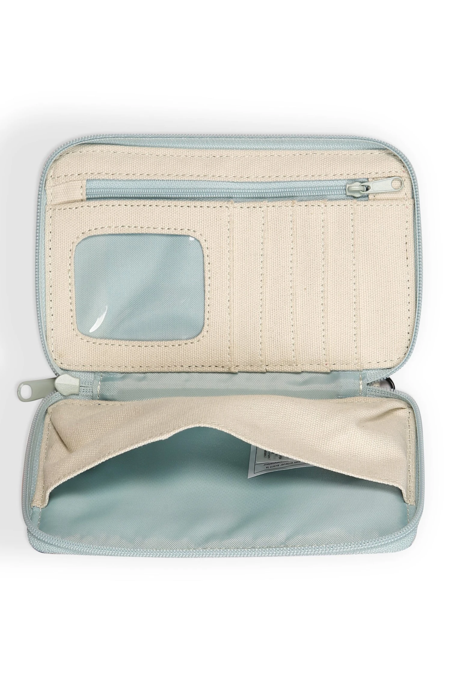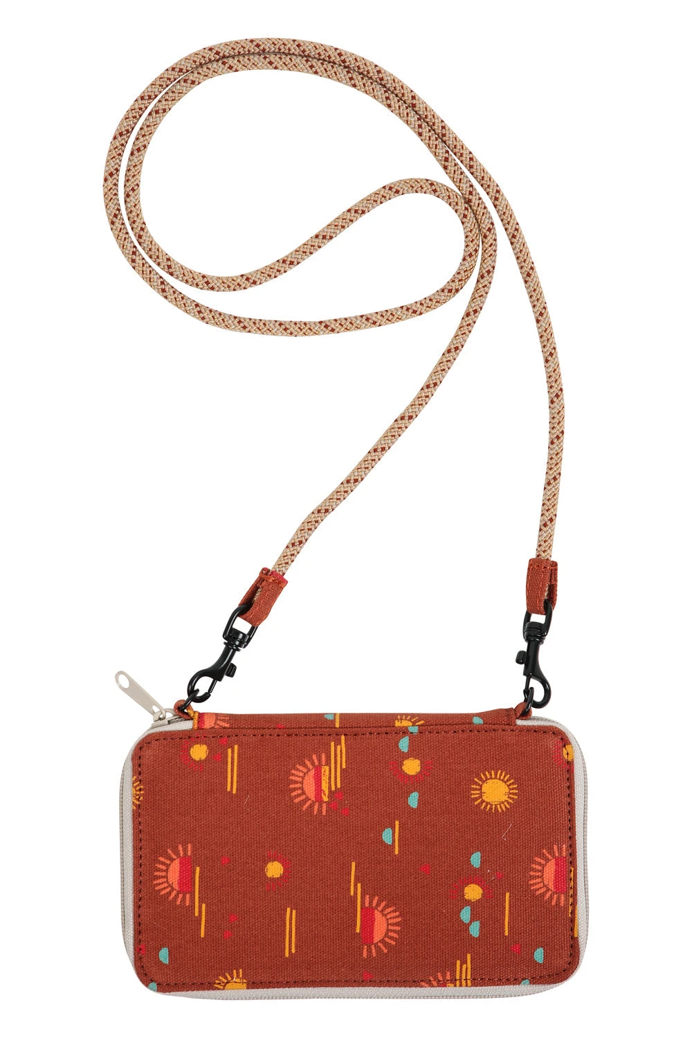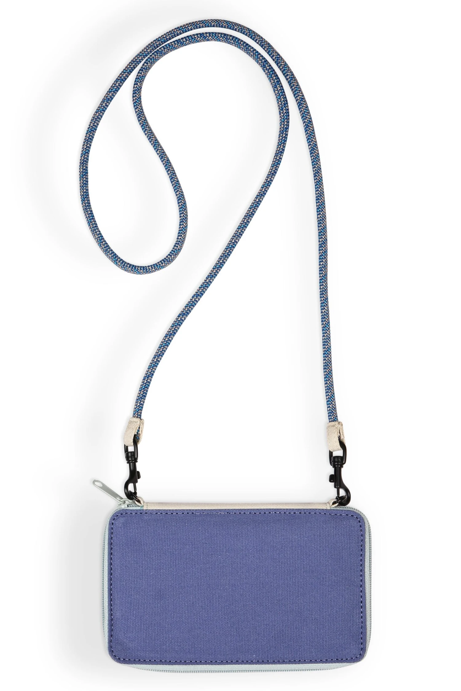 This cross body bi-fold wallet case features a fixed rope shoulder strap that can detach with metal spring hook hardware, one main compartment with zip closure, internal zip pocket and multiple internal cash, card and ID slots. It’s go time!