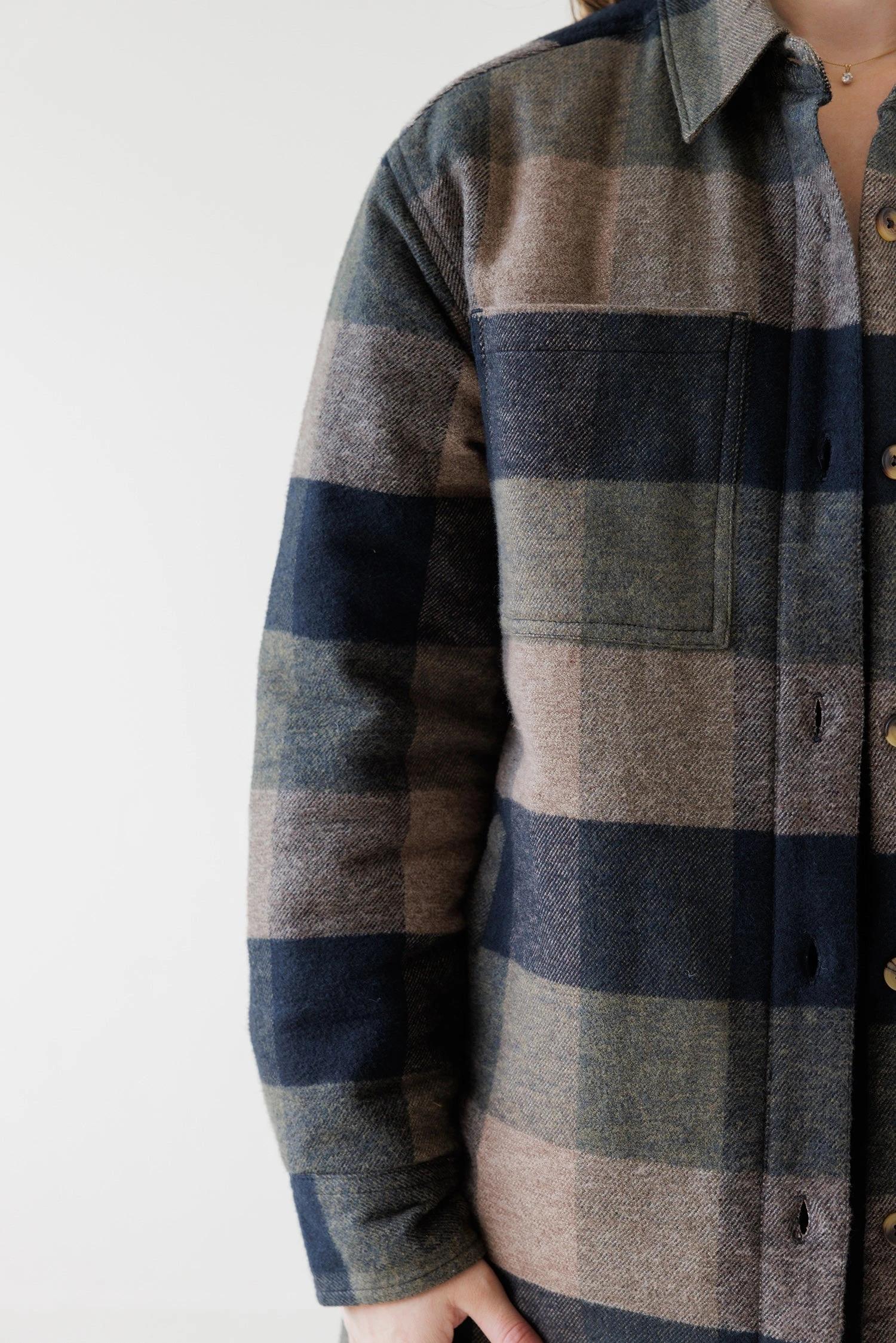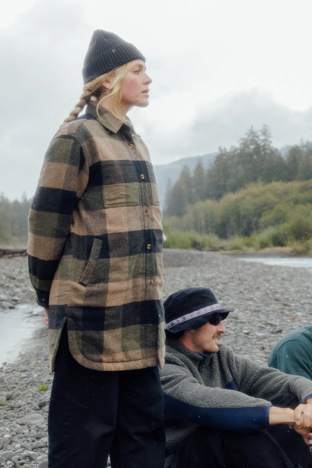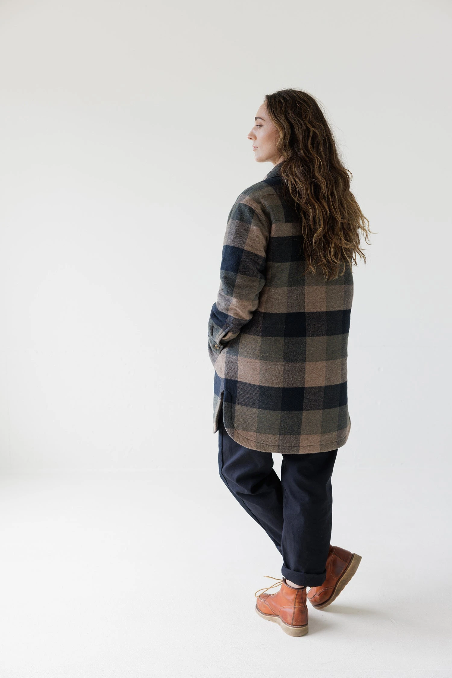 Taking our shacket game to another level is the Ivywood. Made of a soft cotton brushed flannel, with a polyester taffeta lining for easy on and off layering, this midi length shirt jacket is a must have for those chilly, windy days. Keep your body warm and your face smiling rocking the Ivywood on chilly day adventures.