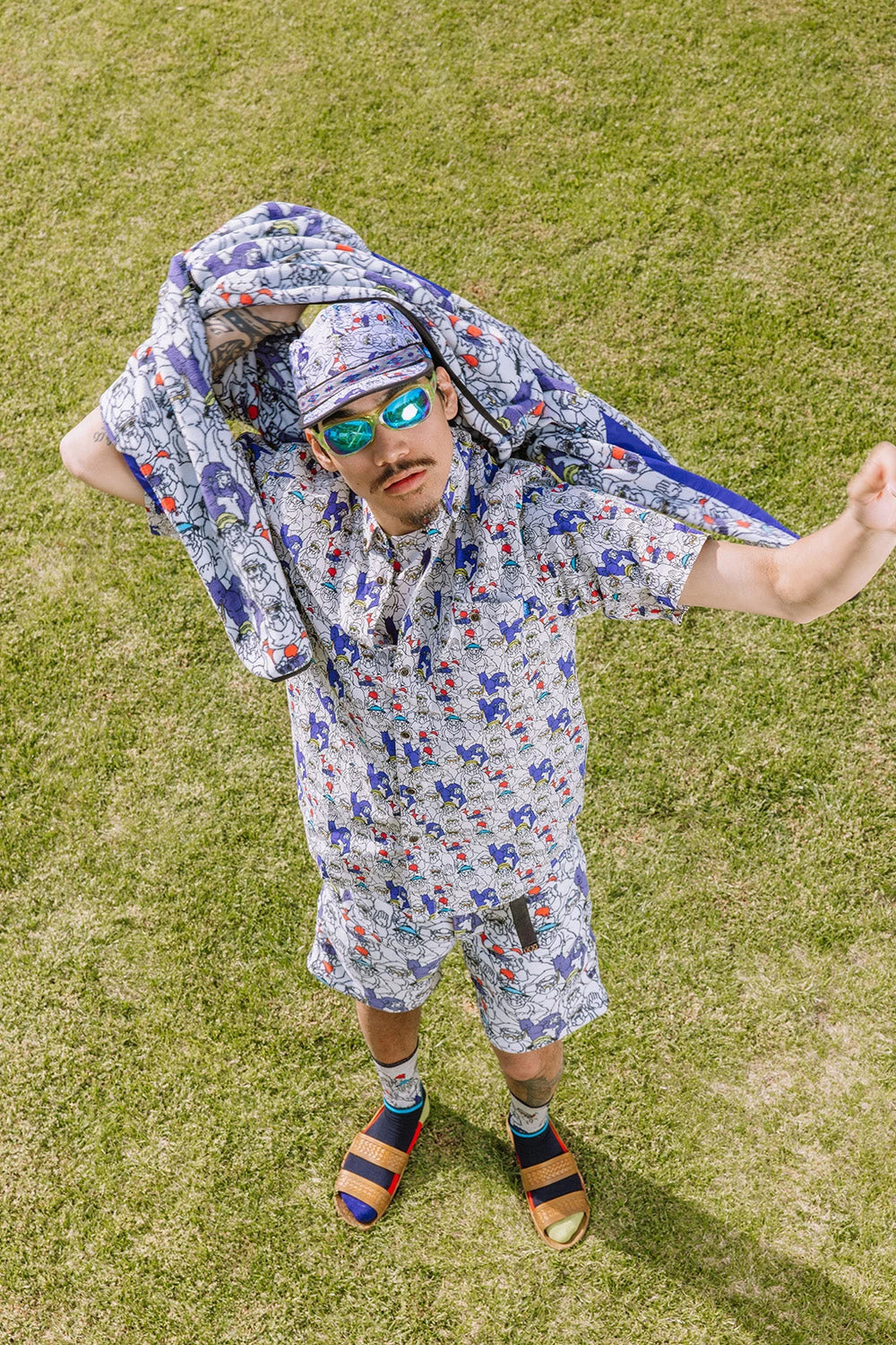 Fabric: 4.5oz 100% hypoallergenic certified organic cotton jersey knit – allover pigment print.