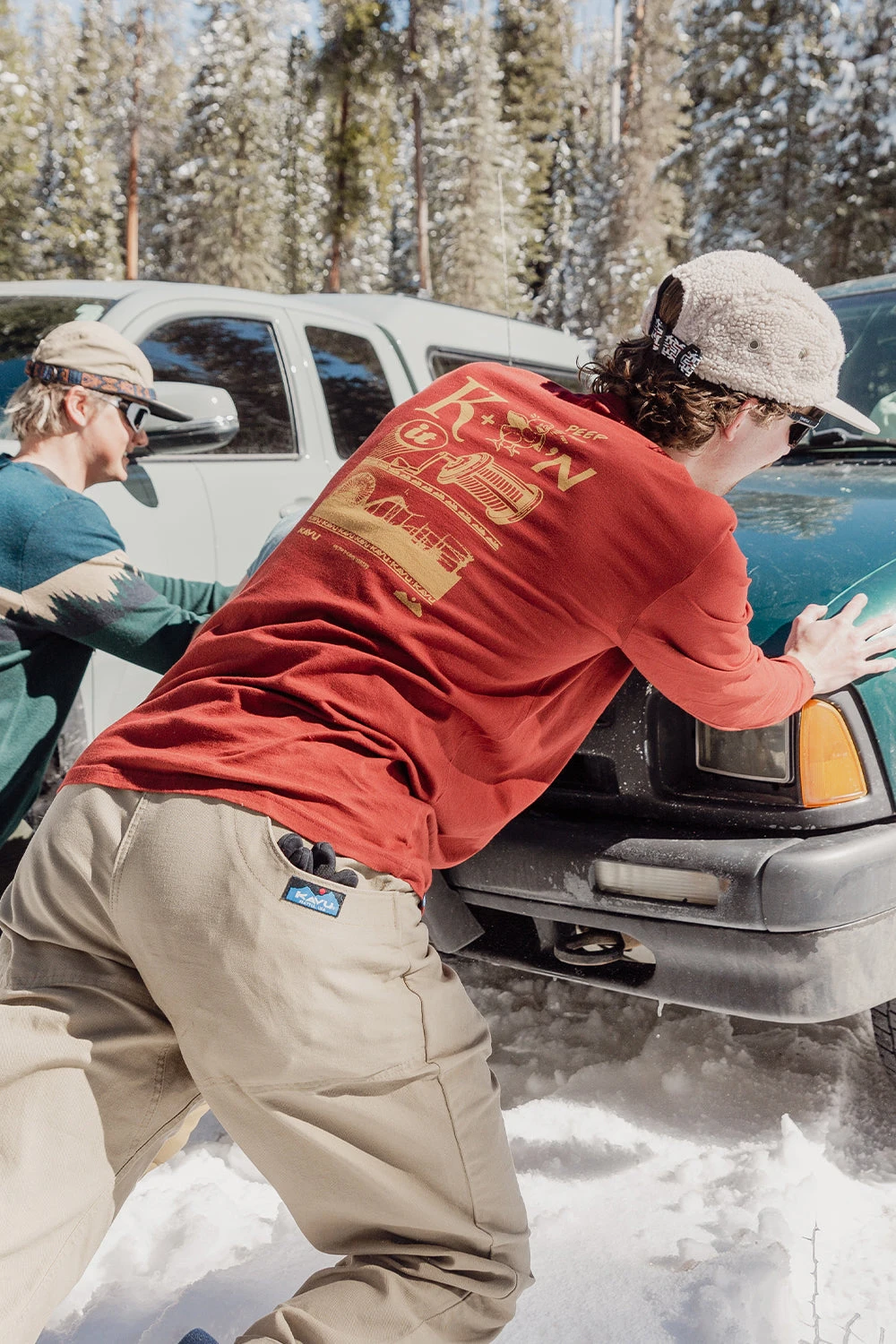 Casual fit, long sleeve crew neck t-shirt, small screen print on front left chest, main screen print on center back, heat transfer back neck label.
