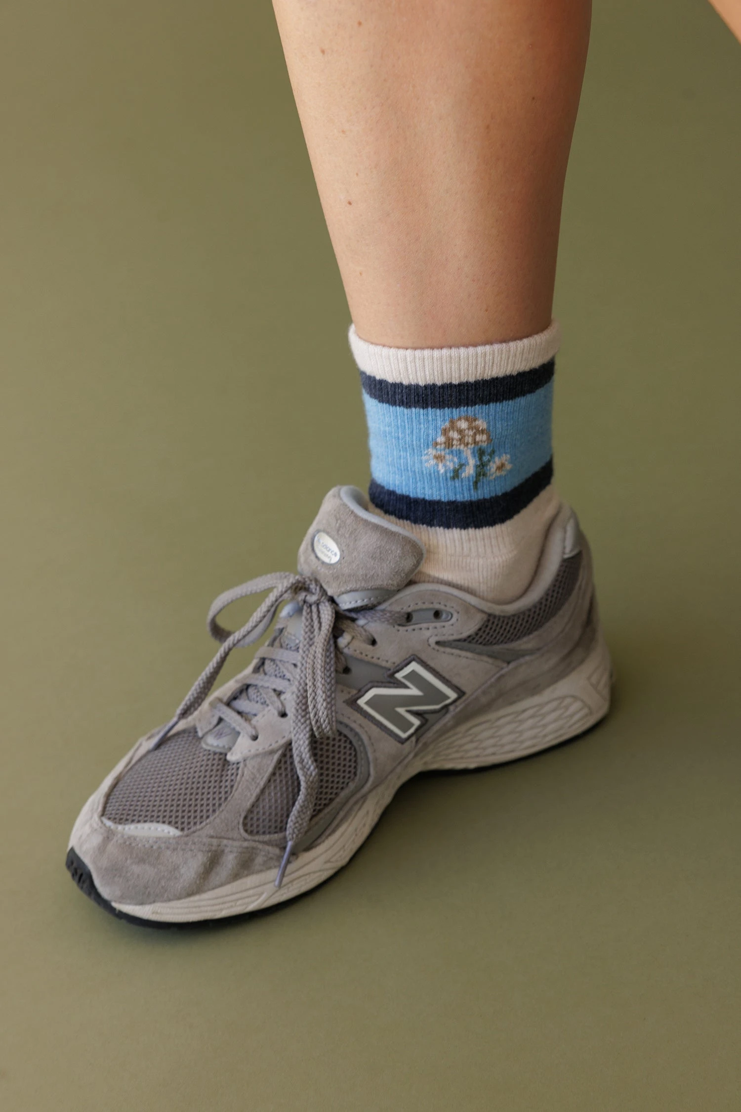 Athletic ribbed short crew sock with jacquard design, french terry foot-bed, heels & toes with all day arch support.