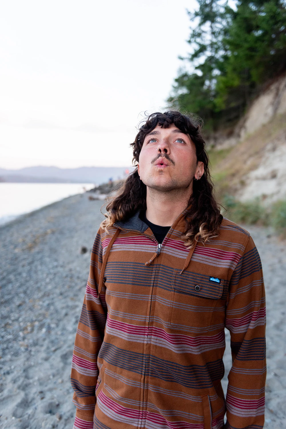 The Seaboard Hoodie is the perfect sunset “shacket” dripping with Baja vibes. This long sleeve zip hoody constructed from yarn dyed 100% organic cotton twill beautiful blend functionality and simplicity. Two easy welt hand pockets, a single chest flap pocket and jersey lined cuffs, hood, and pockets. Crack a cold one. You earned it.