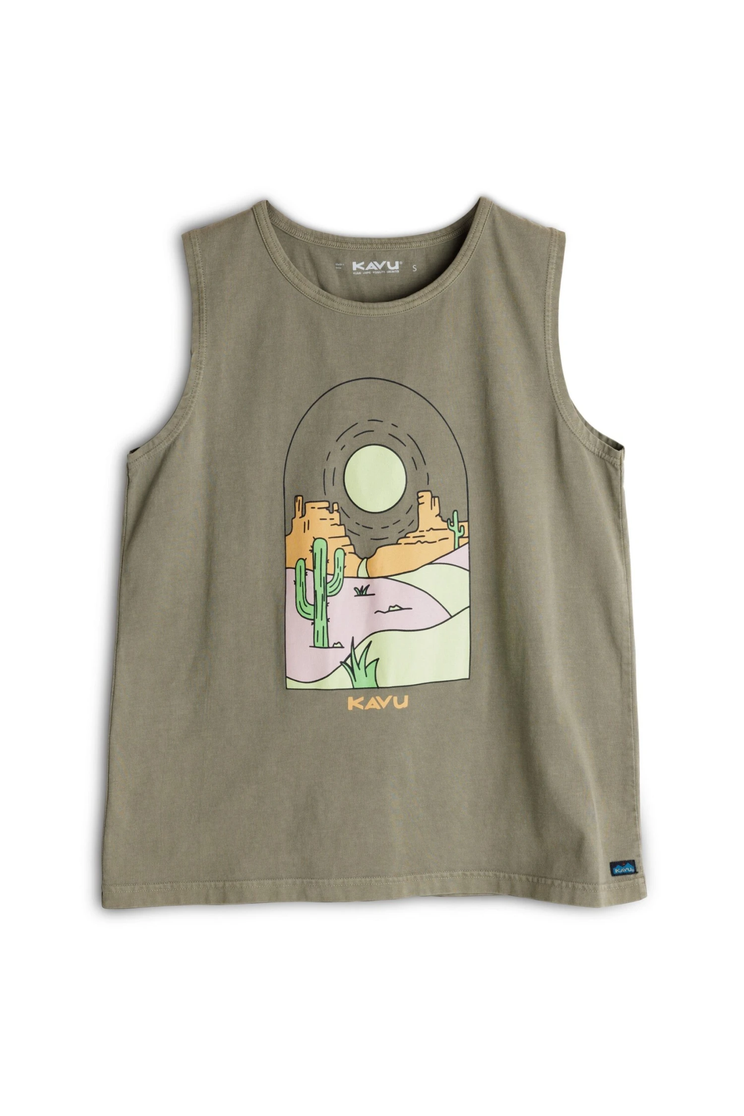 Step into summer with the Summertown tank, featuring unique KAVU graphics on front. Crafted from 100% cotton heavy jersey knit-garment dyed fabric, this tank offers a soft, comfortable feel that’s perfect for all your warm-weather adventures.