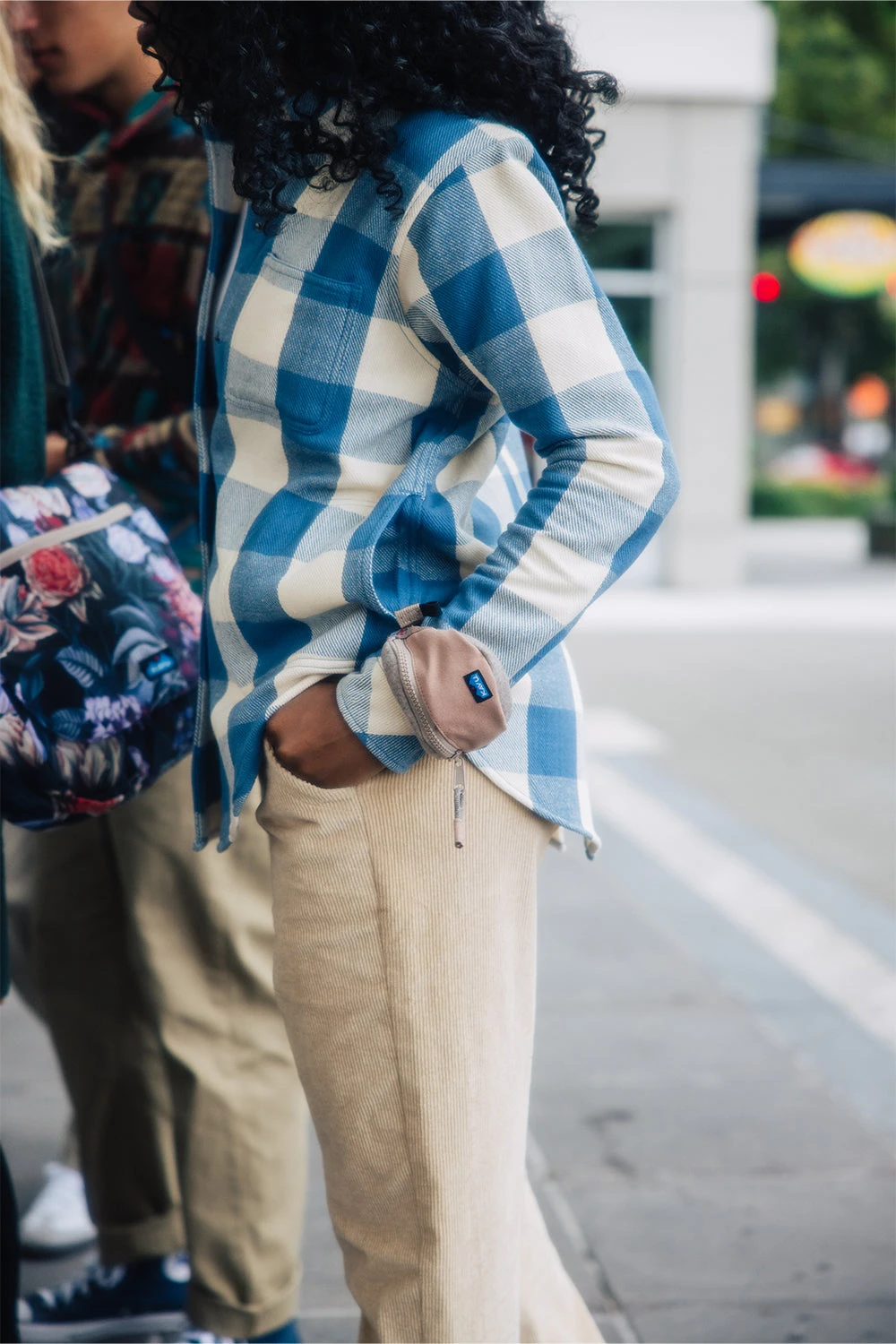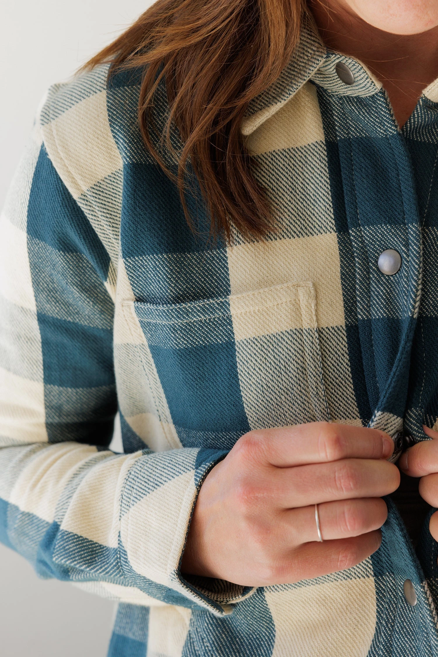 Fabric: 8.5oz 100% certified organic cotton flannel yarn dye twill with heavy brushed back